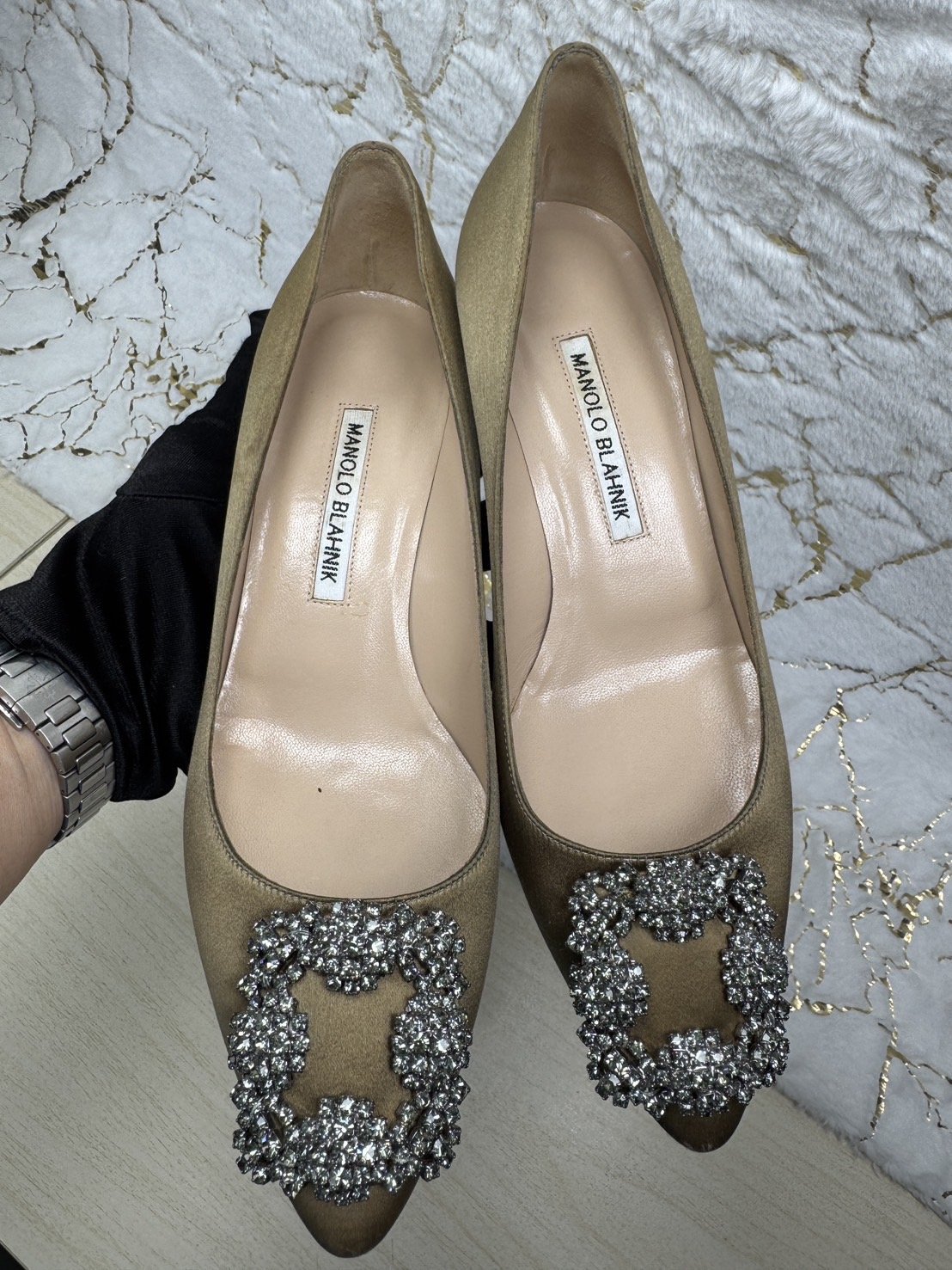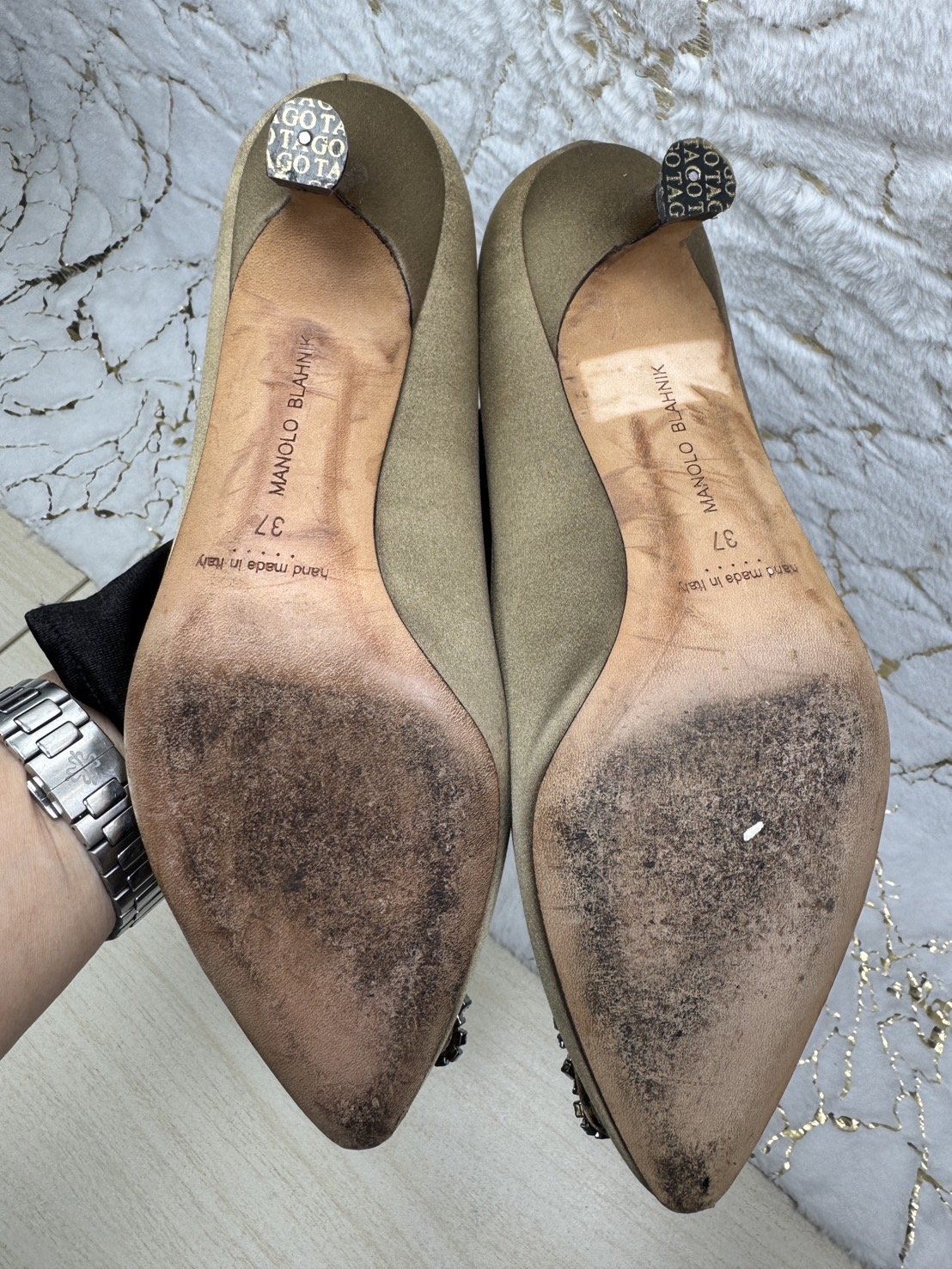 Use Manolo Blahnik HANGISI 70 size 37(23cm) ทำส้นมาใหม่คะ ถุงผ้า(แทน)